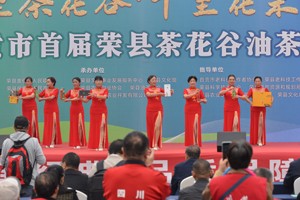 山巅之上,《青山绿水荣州韵》在舞动,《梧桐花开诗书香》在唱响,《幸福变奏曲》在跳跃,川剧绝活《变脸吐火》在上演,被称为东方橄榄油的油茶籽油被捧上舞台……一场围绕油茶文化旅游节的文艺节目,精彩地呈现给了八方朋友,掌声、笑声回荡在十里茶花谷。