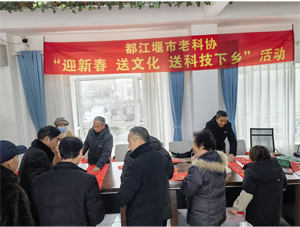社区农民群众拿着一幅幅迎新春联,一份份科普资料,喜气洋洋,兴奋之情溢于言表:大家表示,老科协的老专家、老同志下乡给我们写春联、送文化、送科技,虽是寒冬腊月,我们仍然感受到了春天般的温暖。(都江堰市老科协)