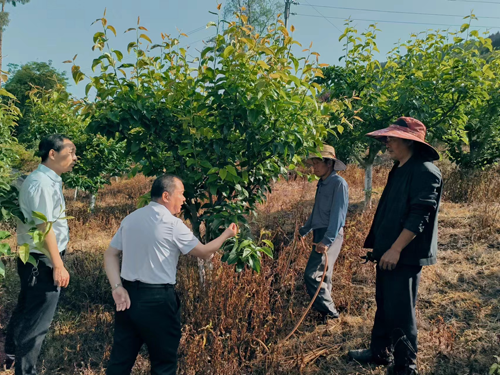 在大寨镇六门社区“坚顺农业专业合作社”业主文志坚经营的504亩水果园进行了现场技术指导,手把手传授施肥、控枝、疏果、套袋等技术。