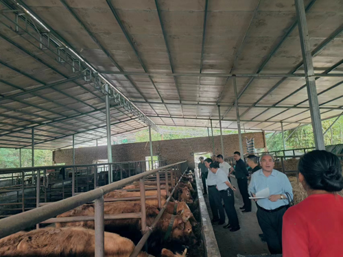 5月8日, 在粉壁镇中心社区何锐家庭养牛场,专家组针对该养殖户,去年4月18日从山东购回的30头西门塔尔牛,因不懂养牛技木,饲养又十分粗放,且不及时防病治病,在不到两个月的时间内就死亡8头,造成直接经济损失5万余元的情况,专家组与业主进行了真诚坦率的交流,要求养殖户一定要相信科学,尊重科学,依靠科学,切忌自以为是,不以为然。专家组看到通过补栏现有的32头牛由于技术不到位,毛长体瘦,令人很是担忧。专家组针对该养殖户缺技术,缺精饲料,缺医药,缺投入,缺信心的“五缺”问题,给出了五条建议:一要向当地畜牧兽医师勤请教多沟通,掌握饲养和防病治病常规技术。二要学会饲料科学配方技术,加大精词料喂养量。三要及时防病治病,促使牛儿健康生长。四是在投入上不能聚减。五要提振信心,坚定信念,适应市场规律,切实加强饲养管理。
