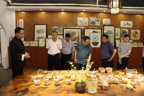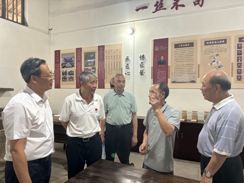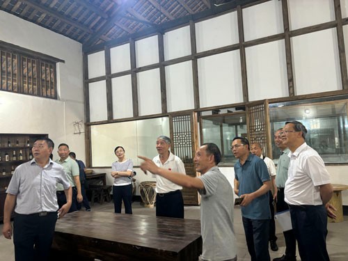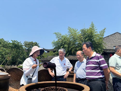 考察组一行冒着35℃高温到国家级非遗传统技艺基地、老科协联系点—合江县先市镇“先市酱油”产业园考察调研,考察组一行对老科协如何帮助指导企业开展科技创新、如何传承非遗文化、如何对学生开展科普教育等问题进行边考察、边探讨、边交流。