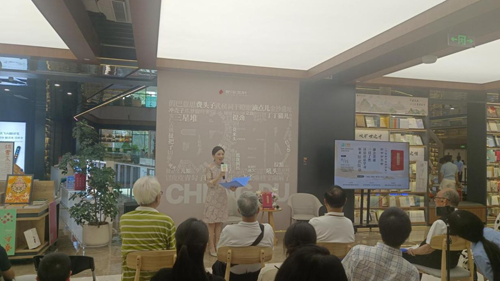棠湖外国语学校高级语文教师崔瑛在仪式上结合《汉语古今通用语法》特点,用自己从事高中语文教学二十多年实践,阐述了应用辞书融会贯通一目了然,汉语语法学习原来如此简单的教学案例和体会,并与中小学生们互动,解答他们提出的问题。