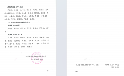 近日,筠连县收到四川省动物疫病预防控制中心2024年12月31日印发的《关于全省重大动物疫病防控工作情况的通报》(川疫控发〔2024〕131号),四川省动物疫病预防控制中心通报了2024年度全省非洲猪瘟等重大动物疫病防控、布病等人畜共患病防控工作、动物疫病监测流调净化工作成效突出市(州)、县(市、区)名单,其中宜宾市筠连县获非洲猪瘟等重大动物疫病防控工作成效突出县,为宜宾市唯一。