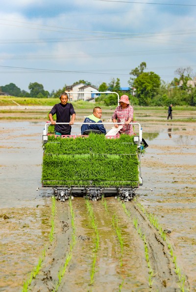目前正值川东地区秧苗移栽关键时节,华蓥市的农民在农技人员的指导下奔忙田间,利用旋耕机、插秧机等农机具整理农田、栽插秧苗,新质生产力绘出春耕新图景。